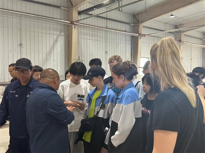 6日上午,一行人來(lái)到了龍江森工集團(tuán)方林藥業(yè)有限公司,開啟了一場(chǎng)關(guān)于中國(guó)中草藥文化的深度探索之旅。在藥廠內(nèi),介紹人員熱情地接待了遠(yuǎn)道而來(lái)的德國(guó)友人,并逐一為他們介紹了各種中草藥的名字和療效。從常見的金銀花、枸杞,到珍稀的靈芝、人參,每一株草藥都承載著豐富的醫(yī)療價(jià)值和深厚的文化底蘊(yùn)。德國(guó)師生紛紛駐足觀看,認(rèn)真聆聽介紹人員的講解,對(duì)中草藥的醫(yī)療價(jià)值有了直觀的認(rèn)識(shí)。