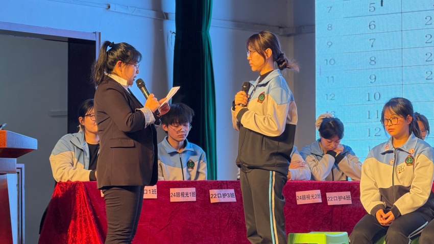 教師大賽結(jié)束后,學(xué)生知識(shí)大賽正式啟幕。在必答題沉穩(wěn)應(yīng)答、風(fēng)險(xiǎn)題大膽沖刺、計(jì)時(shí)題爭(zhēng)分奪秒的多輪較量中比分交替攀升,緊張氛圍牽動(dòng)全場(chǎng)。大賽巧妙穿插觀眾互動(dòng)答題,讓學(xué)生多方位參與競(jìng)賽,在齊心協(xié)力的答題中,悄然凝聚起班級(jí)的向心力與集體榮譽(yù)感。經(jīng)過(guò)激烈角逐,最終誕生團(tuán)體一等獎(jiǎng)1個(gè)、二等獎(jiǎng)2個(gè)、三等獎(jiǎng)3個(gè)。