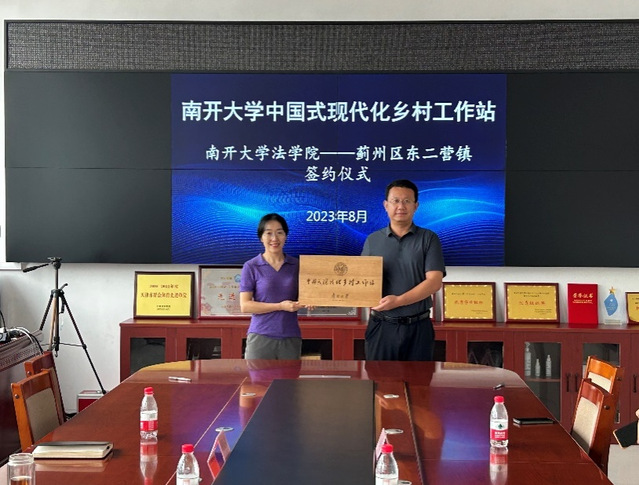 2023年8月11日,南開大學(xué)法學(xué)院在天津市薊州區(qū)楊津莊鎮(zhèn)、東二營(yíng)鎮(zhèn)舉辦“南開大學(xué)中國(guó)式現(xiàn)代化鄉(xiāng)村工作站”授牌及簽約儀式。南開大學(xué)法學(xué)院黨委副書記、副院長(zhǎng)周翠翠,南開大學(xué)法學(xué)院教授、博士生導(dǎo)師張洪波,薊州區(qū)司法局局長(zhǎng)曹洪敏,薊州區(qū)楊津莊鎮(zhèn)黨委書記潘曉東,薊州區(qū)東二營(yíng)鎮(zhèn)鎮(zhèn)長(zhǎng)楊樹山,南開大學(xué)法學(xué)院團(tuán)委書記周敬文,南開大學(xué)法學(xué)院2022級(jí)博士研究生、薊州區(qū)人民政府國(guó)有資產(chǎn)監(jiān)督管理委員會(huì)副主任(掛職)吳梅玲,以及薊州區(qū)司法局、楊津莊鎮(zhèn)、東二營(yíng)鎮(zhèn)、楊津莊鎮(zhèn)富民村代表共同參加活動(dòng)。
