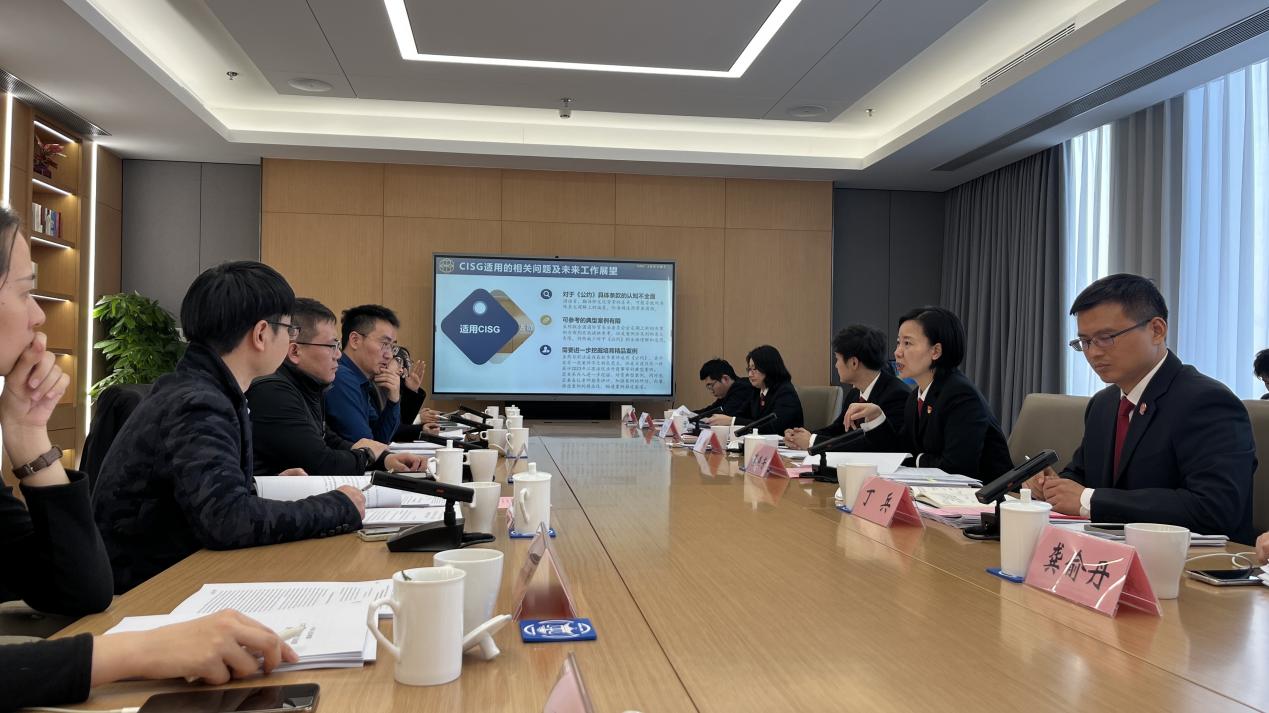 座談會上,雙方首先共同學(xué)習(xí)《中共中央關(guān)于進一步全面深化改革推進中國式現(xiàn)代化的決定》。隨后,蔡燕芳庭長重點介紹了蘇州國際商事法庭在適用《聯(lián)合國國際貨物銷售合同公約》方面的創(chuàng)新做法及案例,展示了法庭在服務(wù)外向型經(jīng)濟、優(yōu)化國際營商環(huán)境方面的積極貢獻。法庭副庭長丁兵及員額法官李誠還結(jié)合具體案件,分享了在國際商事案件審判中的經(jīng)驗與面臨的法律問題。