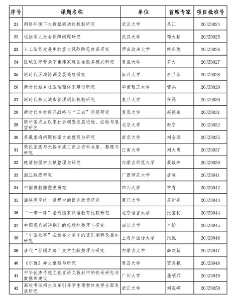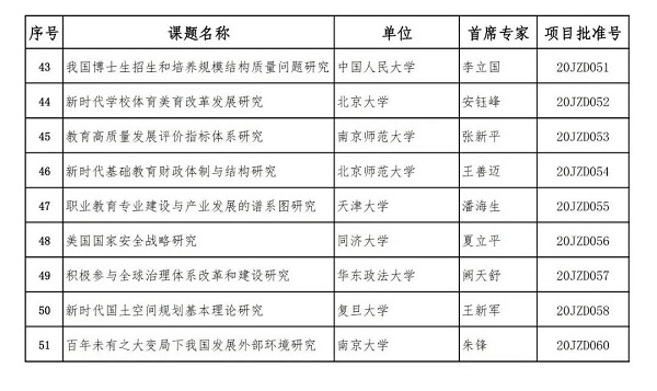 9月28日,教育部社科司官方網(wǎng)站公示了2020年度教育部哲學(xué)社會科學(xué)研究重大課題攻關(guān)項目立項結(jié)果,本年度共有51項批準(zhǔn)立項。其中,復(fù)旦大學(xué)共有5個課題項目批準(zhǔn)立項,位居榜首。浙江大學(xué)以4個項目立項緊隨其后。北京大學(xué)、北京師范大學(xué)、東北師范大學(xué)、南京大學(xué)、南京師范大學(xué)、四川大學(xué)、武漢大學(xué)、西南政法大學(xué)、中國人民大學(xué)等9所高校各有2個項目入選。